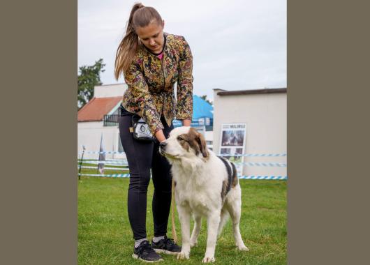 Závěrečné soutěže u tornjaků. Mladá fena Enyky Beniky Sredni Vaštar Jaroslavy Kolmačkové získala nakonec titul BOJ, Vítěz speciální výstavy mladých - fena.
